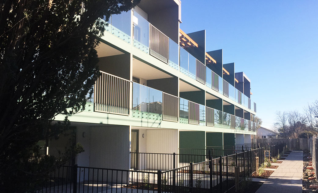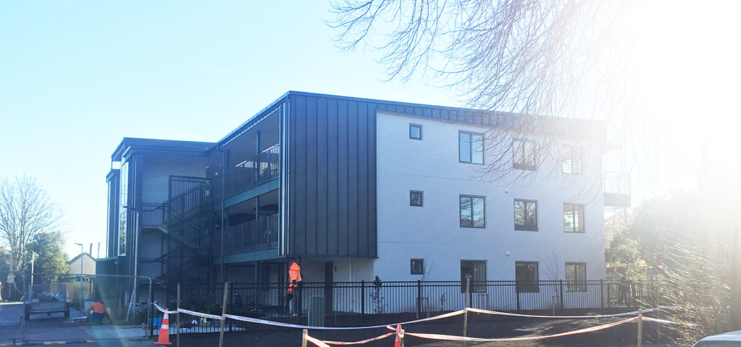 Kainga Ora’s multi award winning 3 level, 21 unit housing complex in Richmond.